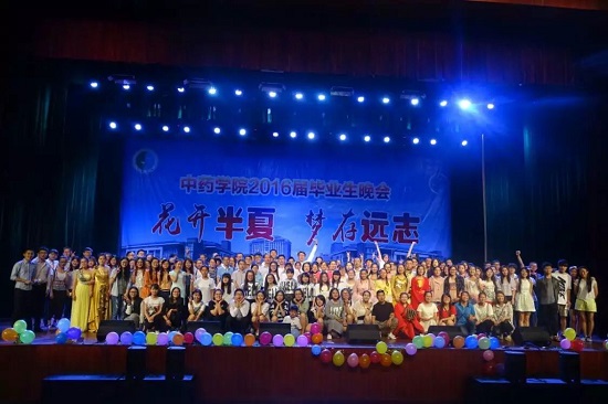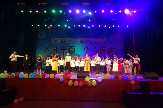 为了给即将离开中医学院的学长学姐们留下美好的回忆,6月19日16时30分,中药学院在大学生活动中心剧场隆重举行了2016届毕业生晚会,此次活动由中药学院文艺部承办。全体院领导和辅导员们、各个学生会部门、2014及2015级学生,与2012届毕业生等共同观看了晚会。此次参加晚会有中药学院院长裴妙荣、党总支书记郭继林、党总支副书记庞维荣、中药学院学工办主任李刚等领导莅临参加,由李继超,赵彬帆、叶琪、张泱主持。晚会以“花开半夏,梦存远志”为主题,寓意杏林学子在初夏六月,放飞理想的翅膀,飞向更高的志向。