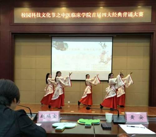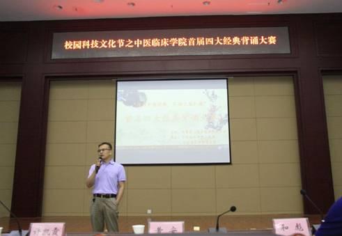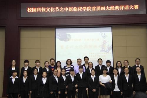 5月31日至6月1日,由校团委主办,中医临床学院分团委、中医临床学院学生会共同承办的第十五届校园科技文化节之首届四大经典背诵大赛在行政楼二层会议室成功举办。中西医结合临床学院党委副书记赵瑞宝、中医临床学院党委副书记黄安、中医临床学院分团委书记和彪、基础医学院内经教研室王平、基础医学院伤寒教研室许凯霞应邀出席并担任评委。各二级学院学生会主席也出席本次活动。活动由巩志凯、王莲花同学主持。