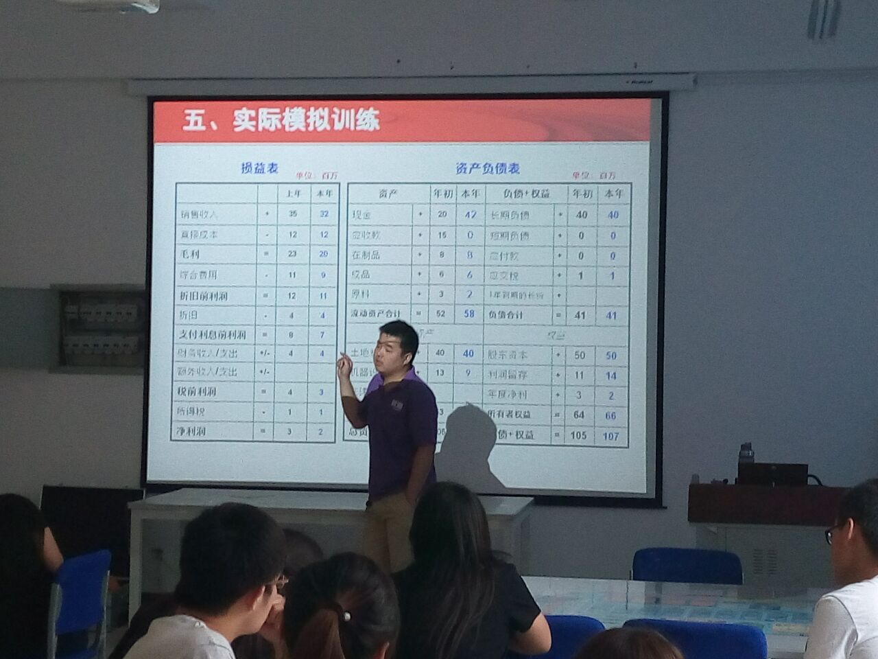 两位老师分别从ERP沙盘和模拟企业运营两方面对选手进行培训。上午主讲ERP沙盘,陈震老师首先向选手说明沙盘的概念、起源、应用和具体事例。接着,介绍组织准备工作,包括人员定位和职能定位,各小组以此进行人员分工。随后,老师带领选手进行手工沙盘模拟演示,最后上机操作电子沙盘。下午主讲模拟企业运营,郭智杰老师通过表格解释企业预算支出、利润以及资产负债等专业名词,同时指导选手对各项费用进行计算,了解决赛流程。