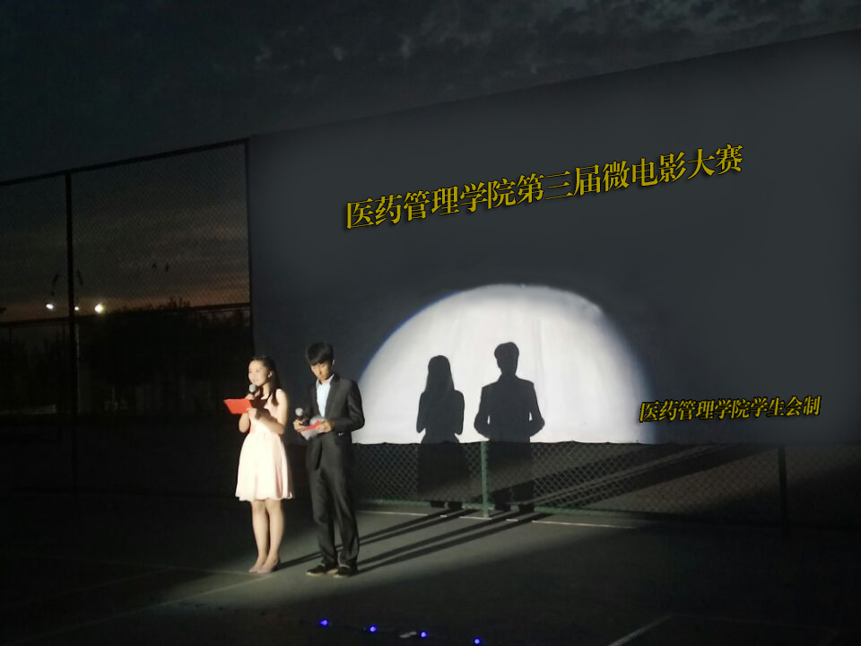 5月30日下午8点整,由医药管理学院主办,院学生会承办的“我的青春我来演”第三届微电影大赛于西门篮球场成功举办。担任此次比赛的评委有医药管理学院杨雯婧老师、高田老师、学生会主席武鹏。大赛由王琨和孟可主持。