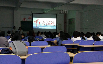 5月22日晚上7时30分,为纪念建党95周年、五四运动97周年,继承和发扬五四精神,增强我校广大青年团员的责任意识,引导青年团员坚定理想信念、勇担历史重任,引领广大青年学生的认知,践行习总书记提出的“勤学、修德、明辨、笃实”的重大理论,在15级护理1班和2班团小组的组织下,两班同学于护理楼301教室开展团日活动,活动内容主要是观看电影《一八九四·甲午大海战》。