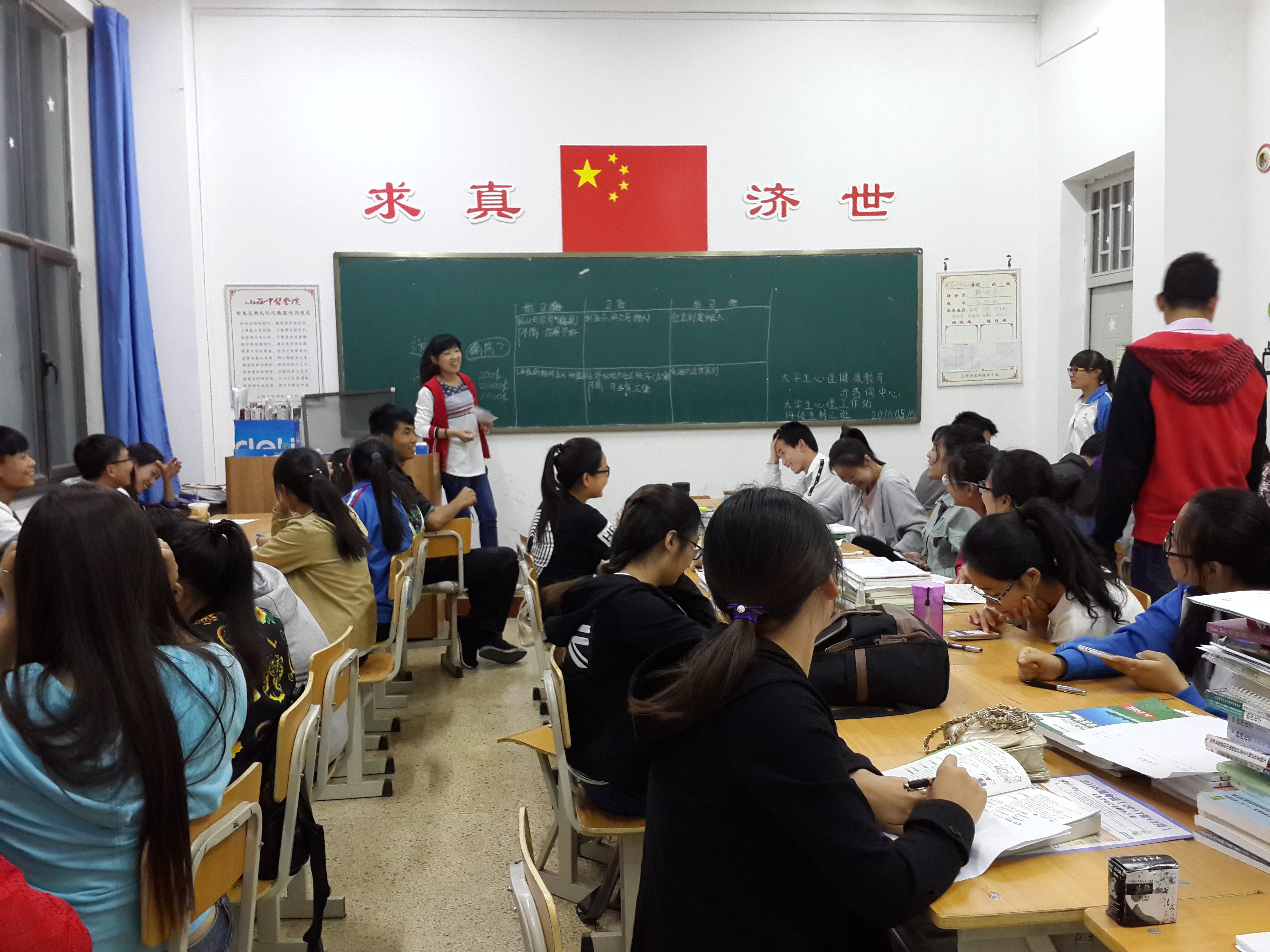 2016年5月16日14级制药与食品工程学院制药工程(生物制药方向)3班于药学楼104教室开展团辅活动。