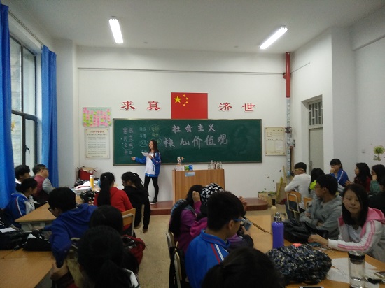 首先,主持人提出问题“什么是社会主义价值观?”同学们都积极讨论了解并学习社会主义价值观。伊桂花给大家一一讲解了社会核心价值观的主要内容,通过主持人精彩的讲述,每位同学都深刻的了解了24字价值观的内涵。其次,主持人提出问题“如果我们处于这种公平公正的美好社会,我们最想干什么?”最后,同学们一如既往用匿名的形式将自己的答案写在纸条上并交给主持人,再由班内同学按顺序上台抽取纸条将内容大声的念出来,热闹的氛围渲染着每位同学。