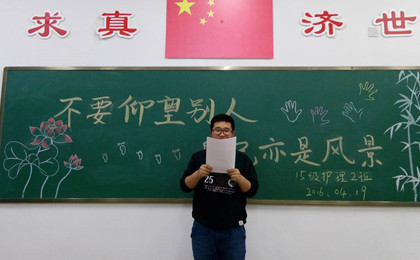 为了增强同学们的进取心,让同学们都能学习张斌学长的奋斗精神。2016年4月19日晚7点,在班长栗元鹏的组织下,15级护理2班全体同学在护理楼204教室召开了以“不必仰望别人,自己亦是风景”为主题的班会。