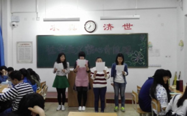 4月21日晚,15级中西医2班在仁济书院甲座418教室内举行“社会主义核心价值观”主题团日活动。此次活动由李润林、田晓鹏主持。活动一开始,第五组同学为大家进行诗歌朗诵《党啊!亲爱的母亲》,展现出党领导下的社会主义伟大成就和巨大变化。随后,第一及第四组同学就社会主义核心价值观的深刻内涵为全体同学做全面详细解读。由此使大家社会主义核心价值观有了更加准确的认识。第二组同学接着又讲新闻将其进行多方位的诠释。”第三组同学的小品《等我赢了钱》生动反映了社会新风貌下百姓的思想变化。”