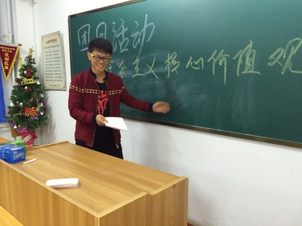 为更好地贯彻落实党的十八精神,全面推动学校精神文明建设,让同学们知晓、理解、熟记社会主义核心价值观24个字的基本内容,宣传青春正能量,营造积极向上的和谐氛围,14级中西医3班于4月19日晚八点在仁济书院甲座412教室举办了以“社会主义核心价值观宣讲”为主题的团日活动。本次活动由第一团小组所有成员设计组织,曹黄毅同学主持,全班同学参加。