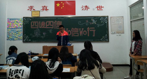 加强大学生思想道德建设,引导大学生进支部、进社团、进网络、进团课养成良好的道德行为习惯,广泛开展“四进四信”普及教育活动,引导帮助大学生进一步牢固树立对党的科学理论信仰,增强同学们同心共筑中国梦的决心,坚定不移走中国特色社会主义道路。15级涉外护理2班“四进四信,我信我行”活动于4月21日晚7点30分,在仁爱书院209教室隆重举行。辅导员于茜老师参加了本次活动,活动由张栌文、姜洪亮主持。