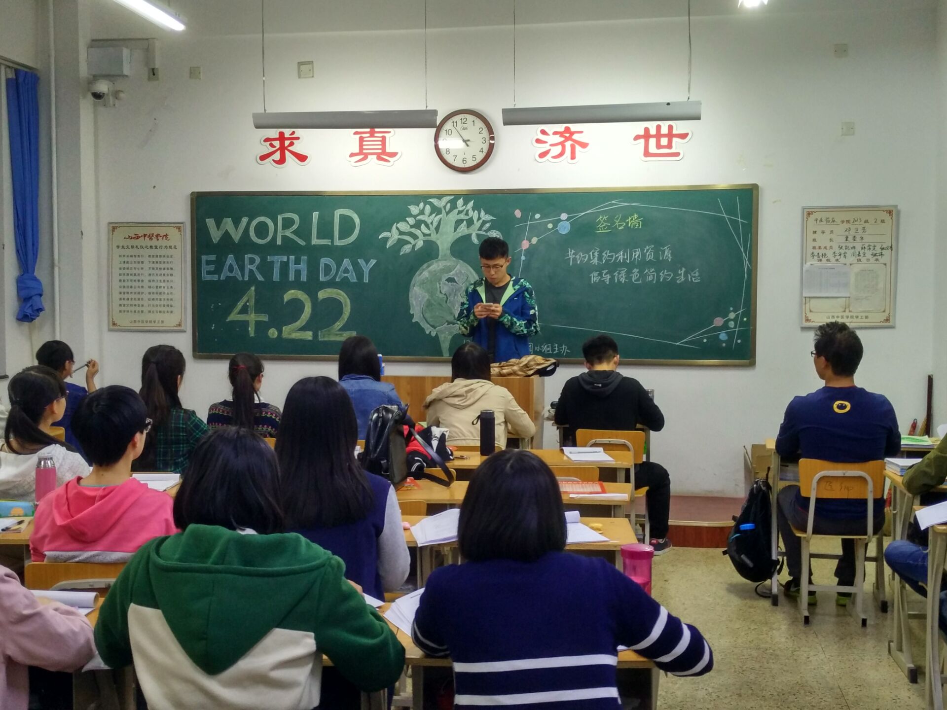 今年4月22日是第47个“世界地球日”,为宣传“传世界只有一个地球”、“节约集约利用资源,倡导绿色简约生活理念”,我班于4月22日晚在医学楼314召开主题班会,由第五团小组负责,主持人为李润桥。全体同学参与。