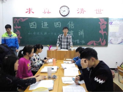 2016年4月26日,晚七点半,15级中医1班全体同学于医学楼201教室举办“四进四信”为主题的团日活动,本次活动由程浩航同学主持。