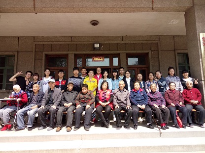 一位老奶奶,80岁高龄,仍是精神抖擞,饶有回味的给我们讲解放战争时期的岁月和她年轻时期的生活,告诉我们要珍惜今天的幸福生活。老奶奶还为我们演唱了一首老歌,志愿者们轻轻地为老人打着节拍,静静地听老人重温岁月的旋律。我们与老人拍了很多温馨的照片,最后,拍了一张全员照片,在全体青协成员大合唱《明天会更好》的柔美歌声中结束了我们的温馨慰问。