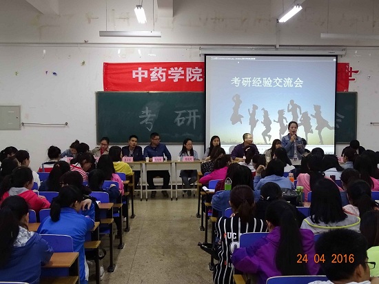 为了让准备考研的和有考研意向的学生了解更多的考研信息,如考研路上会遇到的困难,有关考研的选择以及有效的学习方法,以便在考研道路上做好充分的准备。中药学院于4月24日下午6:20在仁剂书院甲座223教室举办考研交流会。本次会议特邀请了大四考研成绩较为理想的同学为大家传授考研经验,解答考研问题。学工办主任李刚出席考研交流会。参加会议的主要是即将面临考研抉择的大三学生,还有少部分的大二、大一学生。