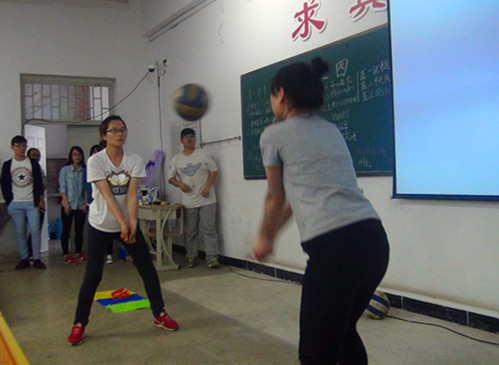 本次活动经过层层筛选,共有九支队伍入围决赛。活动伊始,大家观看了参赛队伍拍摄的有关“青春同路”的小视频。紧接着,主持人致开场白并邀请参赛队伍做自我介绍,比赛正式开始。本次活动分为四个环节。第一环节以及第二环节,均通过指压板上跳绳、颠排球以及猜词游戏,重点考验团队的默契程度,在环节结束后,得分最低者将接受惩罚。而第三部分是两人挤爆气球,然后工作人员进行计数并记录,分数最少组接受惩罚。第三环节,有关猜歌名的游戏,更是让选手们屏住呼吸,争分夺秒。第四环节的背人抢帽子游戏更是将现场气氛推向高潮。