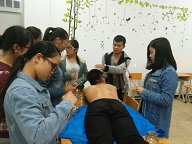 4月20日晚七点我校针灸协会小组长在医学楼419教室为15级中西医实验班进行拔罐等方面的培训。