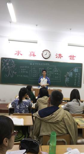 最后该同学又介绍了温病学派的代表人物以及他们的医学主张和医学著作,虽然罗孝铁同学讲的内容有些深奥,但是同学们还是听的很认真!