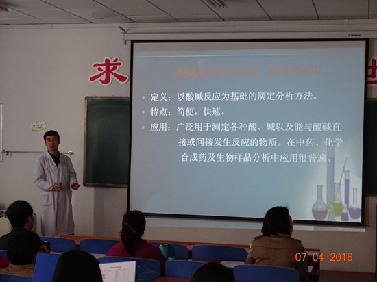 本次比赛共有樊杰、平莉莉、王秀文等20位优秀教师参加,由庞维荣、郭继林、张淑蓉、裴香萍、刘炳辰、王京康、段秀俊七位教师担任评委。比赛之中,各位教师利用多媒体课件对自己所选课题进行15分钟模拟教学展示,从无机化学到有机化学,从植物鉴定学到中药药剂学,各放光彩,深入浅出,并且都精心地组织和设计教学内容,在注重理论阐述的同时兼顾模型展示和互动交流,使得教学内容丰富多彩,教学过程生动活泼。每位教师都充分展现了个人的课堂魅力,有的讲得风趣幽默,有的讲得激情四射,在课件、板书、互动等各个环节都各有千秋,充分地体现了中药学院中青年教师课堂教学的良好风貌和饱满激情,给每位评委都留下了深刻印象。