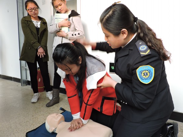 活动开始,培训人员以PPT的形式,介绍了在家庭、户外活动时可能出现的各种突发事故,并详细介绍在不同情况下应当如何采取合适的急救方式。接着,救护人员通过介绍几种常见的骨伤,教同学们如何判断骨伤类型,详细介绍了不同的骨伤应采取不同的搬运方式。与此同时,培训人员也强调了搬运时的注意事项。之后,救护人员拿出模型,教同学们学习并练习心肺复苏,以及如何判断脉搏和呼吸,如何正确进行人工呼吸等急救技能。同学们积极参与现场演示,认真聆听以提高自身急救的能力。