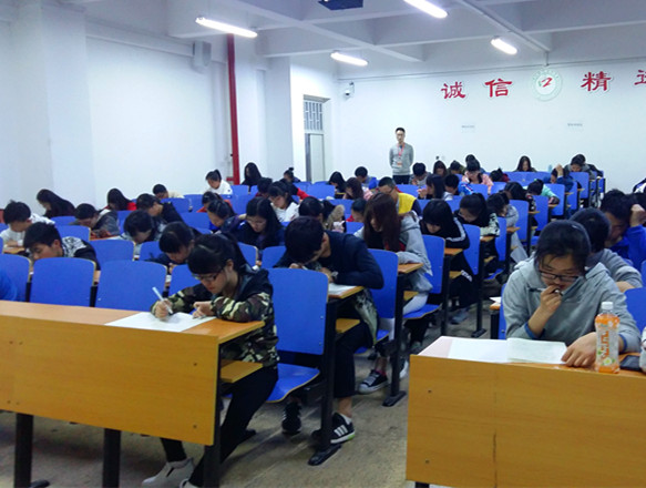 本次“金针杯”初赛主要采用笔试的形式,考试内容主要以第九版《经络腧穴学》为主,考察同学们对经络循行背诵、腧穴定位、操作等的基本理论知识的掌握程度。同学们从容不迫的进入考场耐心等待考试的到来,19时整,监考人员准时为同学们发放试卷,并进一步强调了考试纪律,不容许同学们交头接耳,查阅资料,以最大限度的保证此次考试的公平性和公正性。考试过程中,同学们认真思考、谨慎答题,考场内一片寂静,只能听到同学们笔尖答题的声音。从发卷到考试结束,监考人员的细心负责,同学们的一丝不苟,都为针灸技能操作大赛的开展奠定了良好的基础。