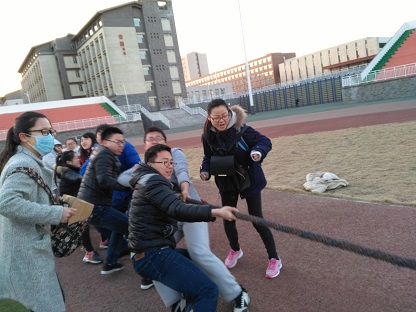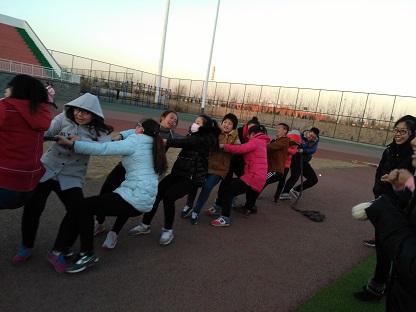 初春的天气有些冷,再加上刺骨的寒风,给这次比赛增加了一丝难度,第一日与中西医班进行较量,三局两胜的赛制。在哨声还没有吹响时,双方已互不相让,绳子拉的笔直,裁判不得不吹哨示意放松绳子,找到中点,引得双方一阵哄笑,随着清亮的哨声,比赛正式拉开帷幕!参加比赛的同学们表情认真,旁边的拉拉队,激情无限,大家使出全力,轻松拿下两局,直接获胜,第二日同中医班的比赛与第一天大同小异,同样是直接拿下两局,以我们班的胜利告终!