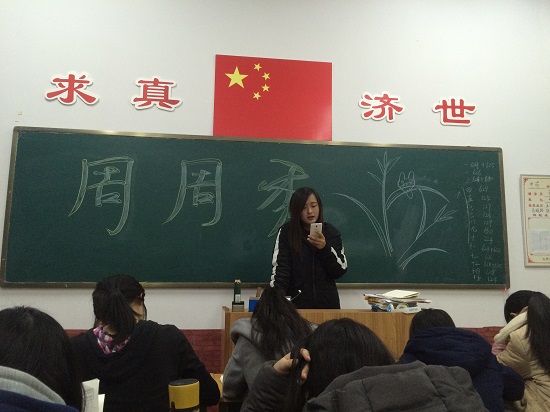 为使全班同学在新学期能够更快地融入学习,进一步提高班级建设,中药分析1班于3月17日晚7时30分,在和剂书院甲座115教室举办“讲台周周秀”活动。全班同学参与了此次活动,并特邀政治辅导员董虹玲参加。学习委员陈晓鹤主持活动。