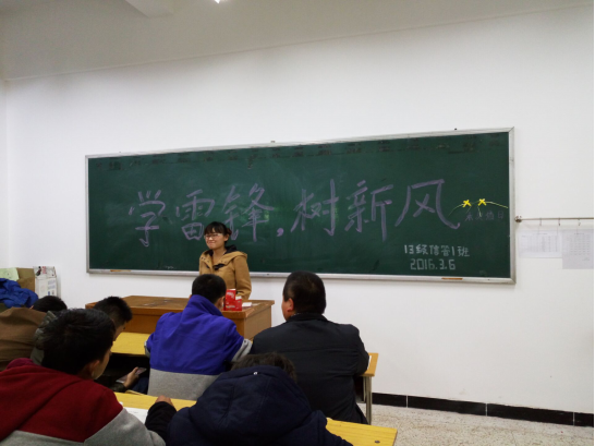 为贯彻党的十八大精神和习近平总书记讲话精神,提升广大青年的思想道德素质和社会责任意识,传承和弘扬雷锋精神,3月6日,13级信管1班在管理楼306教室开展了以“与时代同行,雷锋精神在身边”为主题的团日活动,活动由团支书周东东主持。