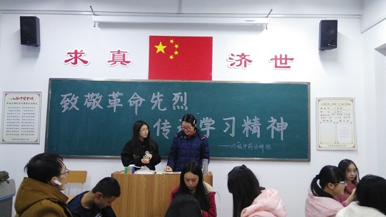新学期,新气象。为进一步提升班级建设,调节班级氛围,给同学们一个表现自我的机会。2015级中药分析班于3月10日在和剂书院甲座203教室举办主题为“致敬革命先烈,传承学习精神”的团日活动。本次活动的主持人为廉婧和马宁。全班同学参与了本次活动,并邀请了学生会两名干事进行旁听。