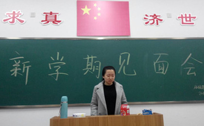 首先,由主持人吴学梅宣布活动开始。随后,导员韩波针对上学期同学们的考试成绩及学习表现做了总结,并对有进步的同学进行表扬,落后的同学进行鼓励,激起了同学们学习的热情,同学们纷纷表示在新的一学期里将会更加努力地学习,并对新学期的学习制订了规划。接着,韩波老师做了特别的强调,新学期开始,纪律尤为重要,这有助于同学们更快的进入学习,增强学风建设,营造一个井然有序、温馨和谐的学习环境。最后,吴学梅对此次主题团日活动进行了总结,宣布此次班会圆满结束。