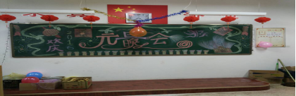 首先,班长何强和文艺委员邓仁杰带领大家进行墙壁图绘工作。大家齐心协力将绿色壁纸贴好,并将教室后墙用书法作品装饰。之后,大家一起将屋顶用彩带及气球等进行装饰,教室立刻有了节日气氛。此期间,团支书闻合美和同学一起进行板报的绘制。最后,装饰进行收尾工作,对教室装饰进行细致点缀及完善处理。教室装饰活动在节日的欢乐气氛中结束,大家累并快乐着,看到教室如家般的的温暖和谐,每个人心里都暖暖的。