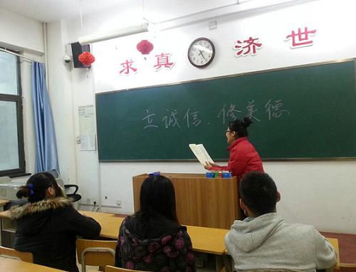 2015年12月23日,星期三,在班级及餐厅举行了12级中医英语班十二月的主题团日活动。参加的人员为辅导员及全体中医英语班同学。此次团日活动以“知文明礼仪 做诚信青年”为主题。