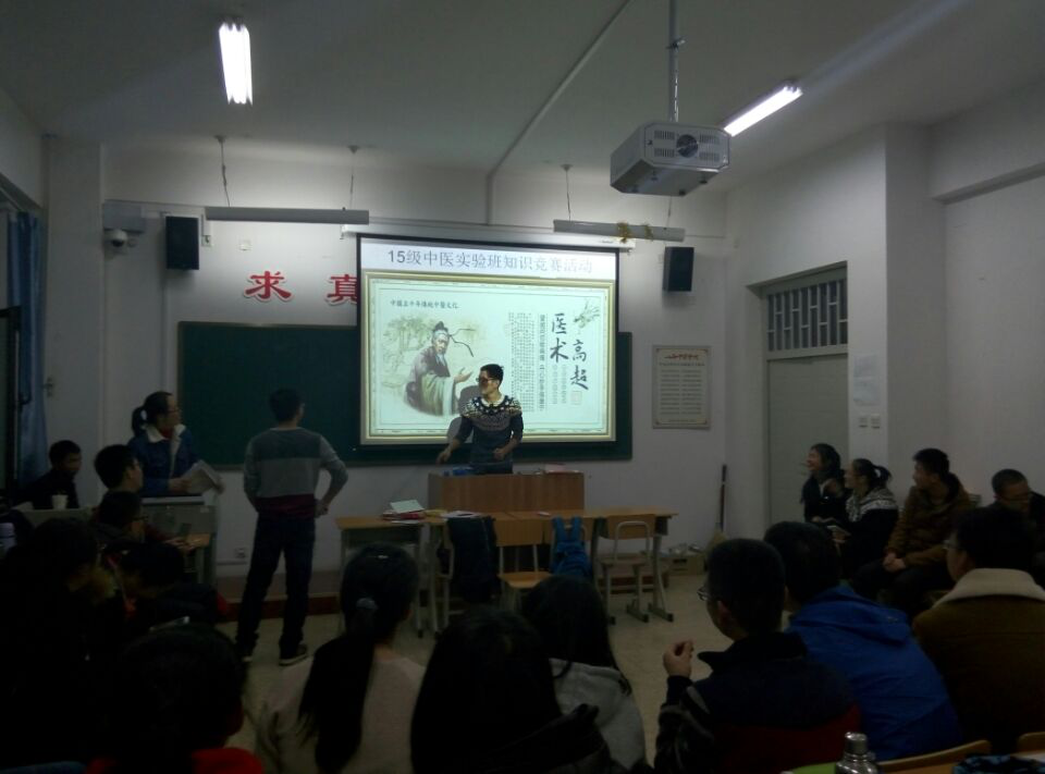 2015年12月6日晚7点,15级中医实验班在仁济书院甲座307教室举办了一场有关专业知识的知识竞赛。本次竞赛旨在督促同学们认真回顾所学知识,激发同学们对学习中医知识的浓厚兴趣。