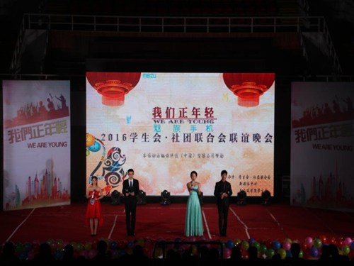 晚会开始前,由一段歌曲串烧进行暖场,温婉、舒畅的歌声瞬间盈满整个会场。紧接着,画风突变,晚会在热情的开场舞《silvery》中拉开帷幕,现场仿佛点燃青春的焰火,动感的音乐回旋在整个夜空。整场晚会现代与传统并存,流行与古典兼收,形式多样,高潮迭起,精彩纷呈。歌曲串烧《贝加尔湖畔》、《故乡》、《月半小夜曲》等轮番上演,或温馨或轻快,勾起观众阵阵回忆。魅力四射,动感十足的舞蹈《shake it》、《欢乐地跳吧》,跳出了活力跳出了青春,而舞蹈《breaking show》、《crazy》更是将现场气氛推向另一个高潮。晚会的现场当然也少不了传统文化的身影。武术、太极扇、柔力球等表演,将中华武魂展现的淋漓尽致;京剧、二胡、琵琶等传统乐器的演奏,为宴会增添一抹古色古香的韵味;传统舞蹈《宫商角徵羽》尽善尽美,唯美生动。高昂、生动的朗诵《相信未来》、《中国梦》慷慨激昂感人至深。令人捧腹大笑的小品《上课请听话》、《后宫那些事》,以幽默风趣的台词、滑稽搞笑的表演,赢得在场观众的阵阵热烈的掌声。欢乐的时光总是短暂,最后晚会在悠扬的歌声中华丽落幕。