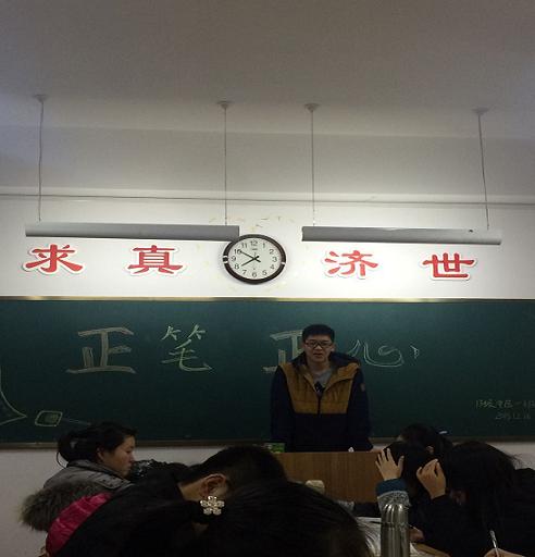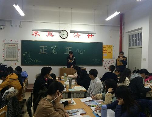 为了响应学校关于培养学生书法能力的号召,同时为了建立具有符合中医临床学院特色的日常艺术活动,12月16日13级中医一班在医学楼312教室,开展了一次以“正笔正心”为主题的班会。