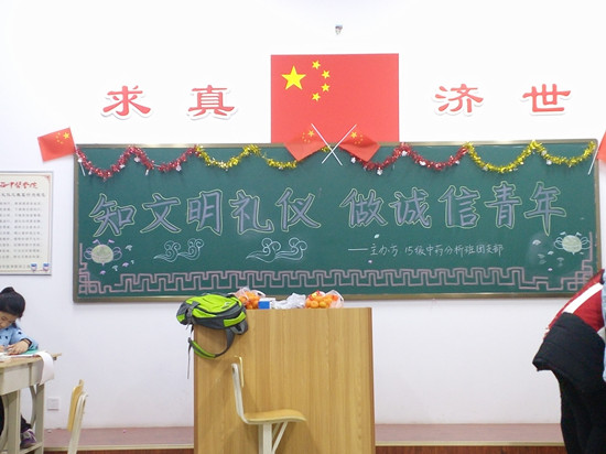 为响应学校的号召,提升大学生个人文化素养,构建一个文明和谐的校园。2015级中药分析班在12月10日晚7:30于和剂书院甲座114教室举办了以“知文明礼仪,做诚信青年”为主题的团日活动。该活动由马宁和虎应劼主持,全体同学参加,并邀请了年级委员会干事。