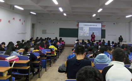 首先,于老师对本次讲座做了相关介绍,使同学们了解了本次讲座的意义。紧接着,孙老师从“护理专业简介”、“护理专业学习”、“护理专业未来方向”、“毕业前准备”四方面带领同学们走进了护理专业。其中,孙老师在讲述“护理专业简介”时,通过介绍“南丁格尔奖”获得者王桂英,使同学们进一步地认识了护理专业,深深地感受到护理人员无私奉献的伟大精神,深刻地体会到护理职业的神圣;在讲述“毕业前准备”时,亲切的孙老师通过与同学们探讨当今社会缺乏人才的现象,使同学们明白了只有不断完善自己,不断提升自己的人格素养和道德修养,才能被社会吸纳。最后,于老师对本次教育讲座进行了总结,讲座在同学们的掌声中落下帷幕。