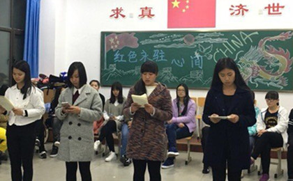 为弘扬和传承红色文化,培育杏林学子的爱国热情,激发同学们民族自信心、自豪感,15级护理3班于2015年10月25日晚7时在仁爱书院206教室召开以“红色永驻心间”的主题团日活动。贺晓丽同学与刘汉强同学担任此次活动的主持人,辅导员刘媛媛老师应邀出席本次团日活动。