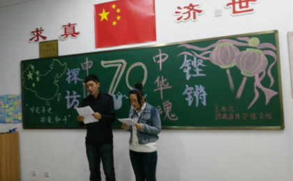 本次活动在全体同学高亢嘹亮的歌声中拉开帷幕。紧接着,赵临凯同学就“中国在世界反法西斯战争中的贡献”做了详细讲解,带领同学们重温历史。接着,进入自由交流先烈事迹的环节。其中,文坤、张晓昱同学,以讲解的方式,带同学们领略了赵一曼、左权等英雄为保卫家乡,视死如归的风范;陈铭、孙小卫等同学幽默的小品《红色抗战》,在让同学们对抗战历史有了进一步的解了。随后,进入 “抗日知识你知多少”的知识抢答环节,同学们争先恐后、积极抢答,使同学们对革命先烈的抗战历史有了更深层次的了解。随后,杨金金、李钰婷、曹慧敏三名同学,用无声语言——手语表达了对祖国母亲的热爱之情,营造出传颂红色精神、传播红色文化的浓厚氛围。
