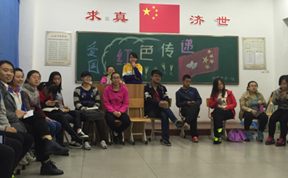 为有效引导大学生培养爱国的基本素质,锻炼同学们积极向上、开拓进取的思维方式,2015年9月22日晚7时30分,14级护理1班在新校区护理楼302教室开展了以“红色传递”为主题团日的活动。活动由组织委员王慧祯主持。