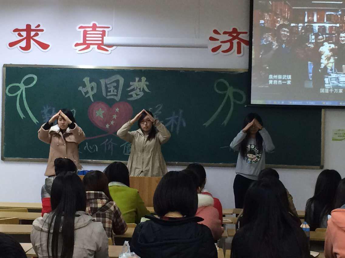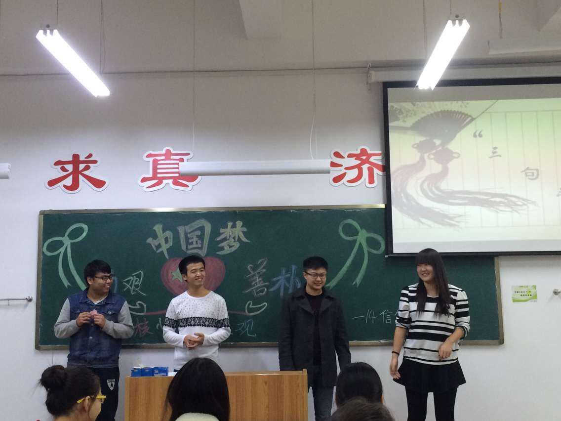 为阐述对中国梦、社会主义核心价值观、青年使命责任方面的理解,分享人生经历和经验,11月19日,14级信管一班在管理楼118教室开展了以“放飞中国梦,畅想价值观”为主题的团日活动。活动由毕雨良、郗慧鑫主持,信管一班全体同学参加了本次活动。