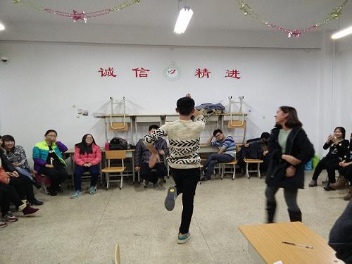 首先由主持人尹立华开场,引入此次活动主题及活动流程,首先以一首朝代歌切入主题,接着同学们一次向大家介绍自己所在地的独特文化,大家互相讨论;接下来是游戏环节,首先同学们找好自己的队伍,并将推选队员参与游戏,“知识大搜集”考验同学们对过去知识的积累分四个环节判断、选择、填空、联系。第一名将惩罚最后一名的组员。