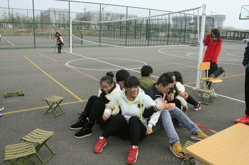 在简短的开幕式之后,素质拓展一系列活动陆续开展围绕着“坐地起身”、“塔桥过河”、“辛苦吃饼干”、“连连看”等一系列活动进行生动有趣的拓展。活动的趣味性让在场的每一位同学尽笑颜开,同时每一个活动最后都会做一总结,真正的让同学们体会到其中蕴含的“团队协作”的思想。