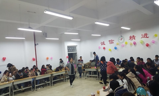 首先由主持人介绍本次活动的目的,在于缓解学习压力,增进同学友谊。接着讲解第一个游戏“真心话大冒险”的游戏规则。各式各样的真心话与大冒险将活动带到高潮。紧随其后的是“五角和一块”男女搭档的游戏和“抢凳子”游戏。然而就在这时突然停电,但并没有影响同学们玩游戏的心情,纷纷拿出手机为会场照明。整个游戏场面热闹轻松,联欢氛围浓厚。最后,全体同学为当天过生日的曹凤娇同学合唱一首《生日歌》,在同学们朗朗的歌声中,此次活动圆满结束。