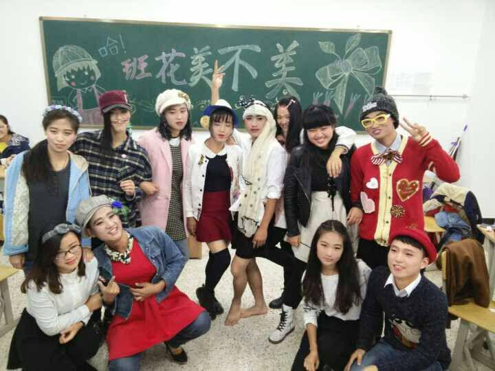 主持人宣布比赛开始,各小组成员用自己准备好的工具为模特化妆,30分钟后,各选手登台走秀展示自己小组的个性,幽默搞笑的妆容,赢得了同学们的一致好评。活动结束时最美丽的班花小组获得了奖状。