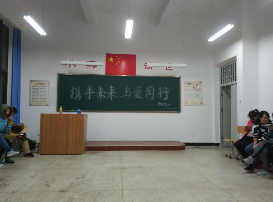 为了增强班级的凝聚力,活跃大家的积极性,让同学们进一步学习团结、互助、关爱的优良品德。信管二班于2015年11月17日在管理楼106教室开展以“携手未来,与爱同行”为主题的班级活动。活动由班长孙红鑫策划,陈杨同学主持。全班同学共同参加。