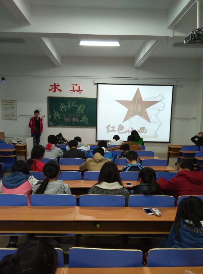 “冉冉红旗飘”,新时代的青年有新时代的朝气。班会上由团支书向学生们集中讲解了山西的红色文化故事。老兵们的经历带领我们回首那宏伟壮观的祖国霸业,他们胸口前的每一枚勋章都是对他们奉献祖国的见证。观看的红军系列影视作品更让同学们在体会战争辛酸坎坷和百姓疾苦的同时珍惜现在生活的美好和来之不易。