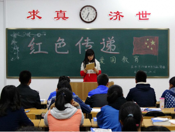 为了培养同学们的爱国主义思想,树立民族自尊心,不断提高社会思想道德觉悟。10月21日,15级中西医3班在413教室开展“红色传递”主题班会。