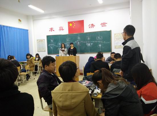 活动开始,主持人向同学们讲述这次团日活动的主要目的,并围绕这一主题提出“抗战期间有哪些著名的战役和英雄事迹”的问题,根据这些问题同学们展开了激烈讨论。随后,以团小组为单位分别选出两名代表进行回答问题,同学们表现积极,现场气氛活跃。