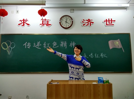 其次,我们以唱红歌的方式,缅怀革命先烈。首先张李梅同学演唱了《十送红军》;刘天一同学一曲《东方红》激动人心;尹相乾同学献上了一曲《五星红旗》;三名同学的演唱,让我们回望历史。让同学们懂得我们今天的美好生活是无数革命先烈用生命和鲜血换来的,所以,我们应该继承和发扬红军那种吃苦耐劳、不怕牺牲的精神,更加珍惜今天的生活,更加坚定地走具有中国特色的社会主义道路,热爱祖国、热爱人民、热爱生活,勤奋学习,为民族的振兴和国家的繁荣富强做出自己应有的贡献。