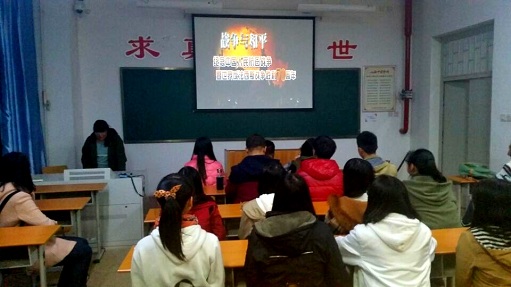 此次活动中同学们表现出较高积极性,主持人向大家介绍了有关抗战期间英雄将领张自忠,还介绍了抗日战争中的几大经典战役以及相关历史背景,同学们“红色历史”从中学到了抗战精神的伟大。最后大家还观看了红色电影《百团大战》,影片为我们重现了当年我党为突破日军囚笼而奋起拼搏的惊天壮举,是军民联手抗日的伟大历史纪念。观影结束后,同学们纷纷交流感受,大家都认识知道了战争的残酷无情以及和平的珍贵与来之不易,表达出浓浓的爱国情怀与期待世界和平的美好愿望。
