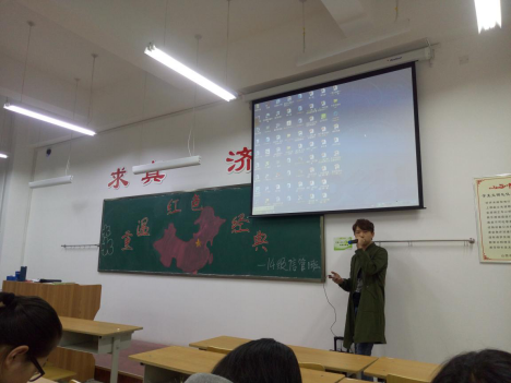 为纪念中国人民抗日战争暨世界反法西斯战争胜利70周年,传承抗战精神,弘扬红色文化,深化社会主义核心价值观,激发同学们的爱国热情,10月22日,14级信管一班在管理楼118教室开展了以“重温红色经典”为主题的团日活动。活动由杨方佳、谯艳主持,信管一班全体同学参加了本次活动。