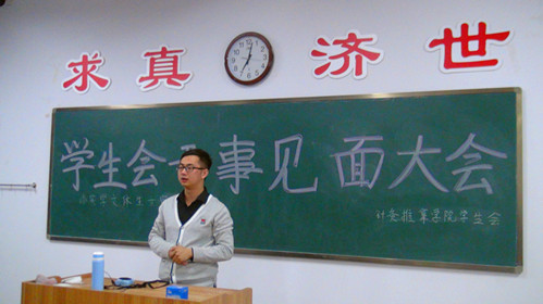 为了增进学生会成员彼此间的了解, 10月15日晚7时,针推学院学生会于医学楼102教室隆重召开了学生会干事见面会,针推学院第十一届主席团及全体干事参加了此次见面会。本次见面会由文艺部部长马偲铭主持。