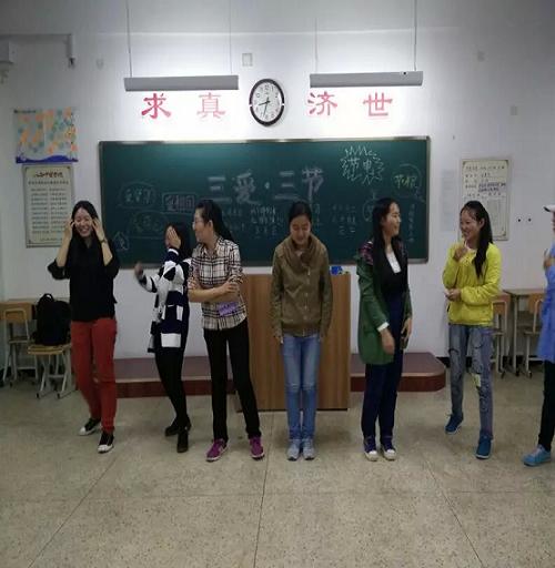在2015年9月24日晚自习,14级中医3班组织召开了“三爱三节”主题系列活动,此次团日活动是有尹立华同学策划并主持开展的。此次活动除了提前准备活动外,核心环节共分为5部分:①首先由主持人开场并说明此次团日活动目的及意义,和对相关活动的要求等,“找朋友”活动,围绕“三爱三节”分为4类,并让同学们找自己的团队②“心有灵犀一点通”两人合作,你来比划我来猜,配合彼此默契③围绕此次活动进行4轮“谁是卧底”游戏,提升同学的判断能力⑤同学们意犹未尽,提议并进行了“萝卜蹲”游戏,同学们玩的不亦乐乎⑥最后由主持人总结结束。同学们均积极参与其中。